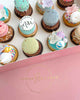(3 days' notice) The Works Cupcakes come in our signature pink box and are topped with an assortment of meringues, macarons, sugar blossoms and 1 custom edible greeting plaque. Choose your colour preference and allow us to create a beautiful assortment! You also have the option to upgrade to printed macarons for an extra personal touch.