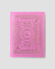 The Jenna Rae Cakes Congratulations Greeting Card is pink with gold-embossed cake slices, a cupcake, and ornate patterns, featuring the repeated words CONGRATULATIONS and CUT THE CAKE.